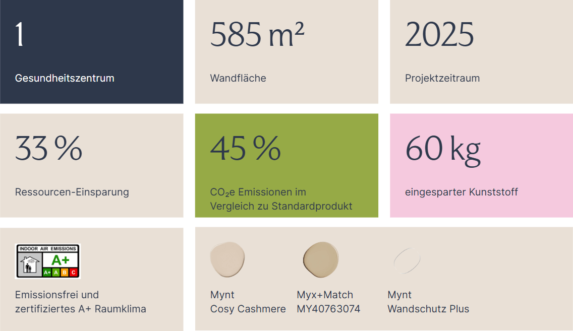 Mynt ersetzt konventionelle Farbprodukte, die Umwelt und Raumluft belasten. Als Vorreiter setzen wir auf natürliche Inhaltsstoffe und ein zertifiziertes Bio-Bindemittel, das Umwelt- und Gesundheitsbelastungen messbar reduziert. Unsere Farben sind mikroplastikfrei und erfüllen die Anforderungen moderner Bauprojekte. Für diesen Innovationsansatz wurde Mynt vom Land Rheinland-Pfalz mit dem Innovationspreis ausgezeichnet.