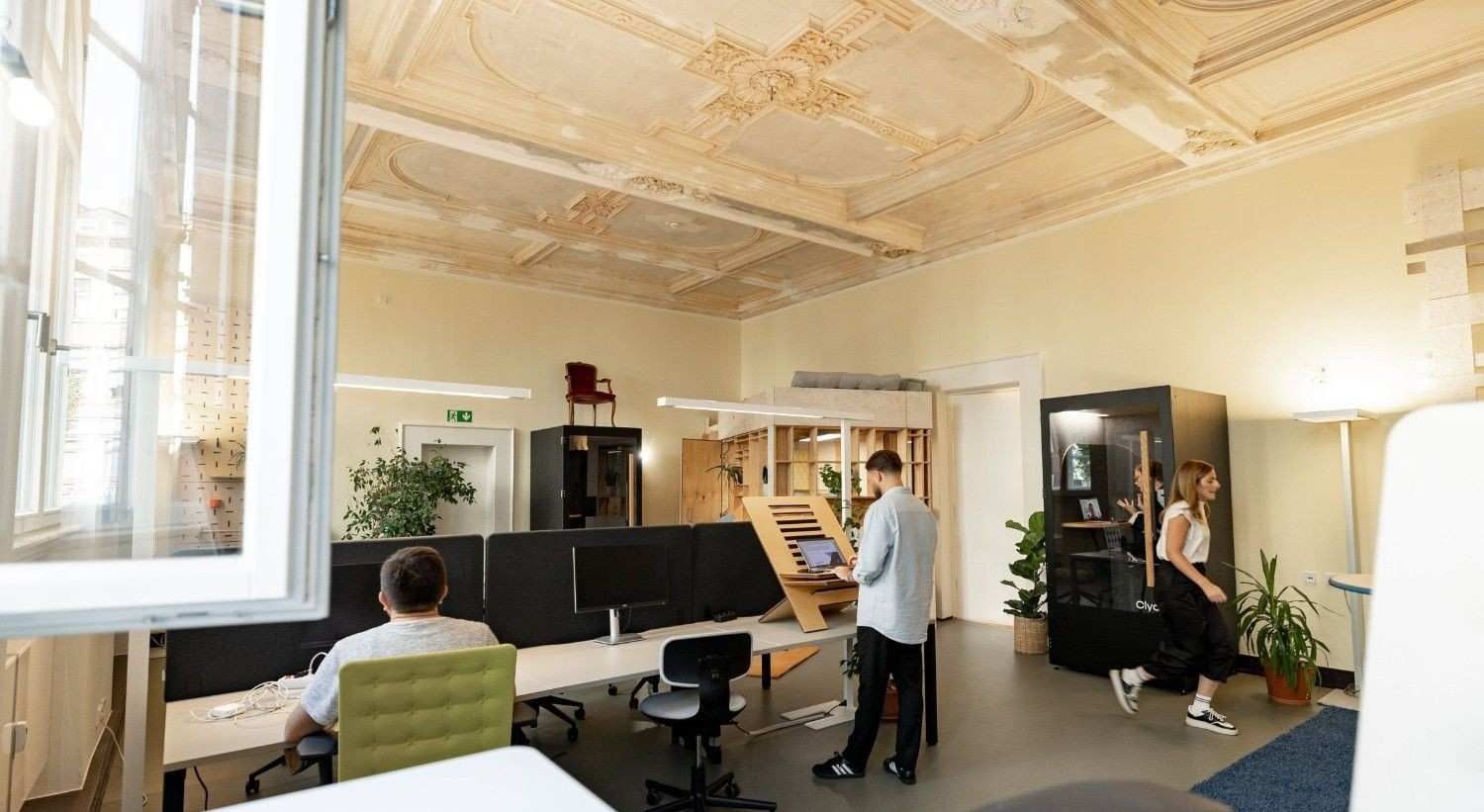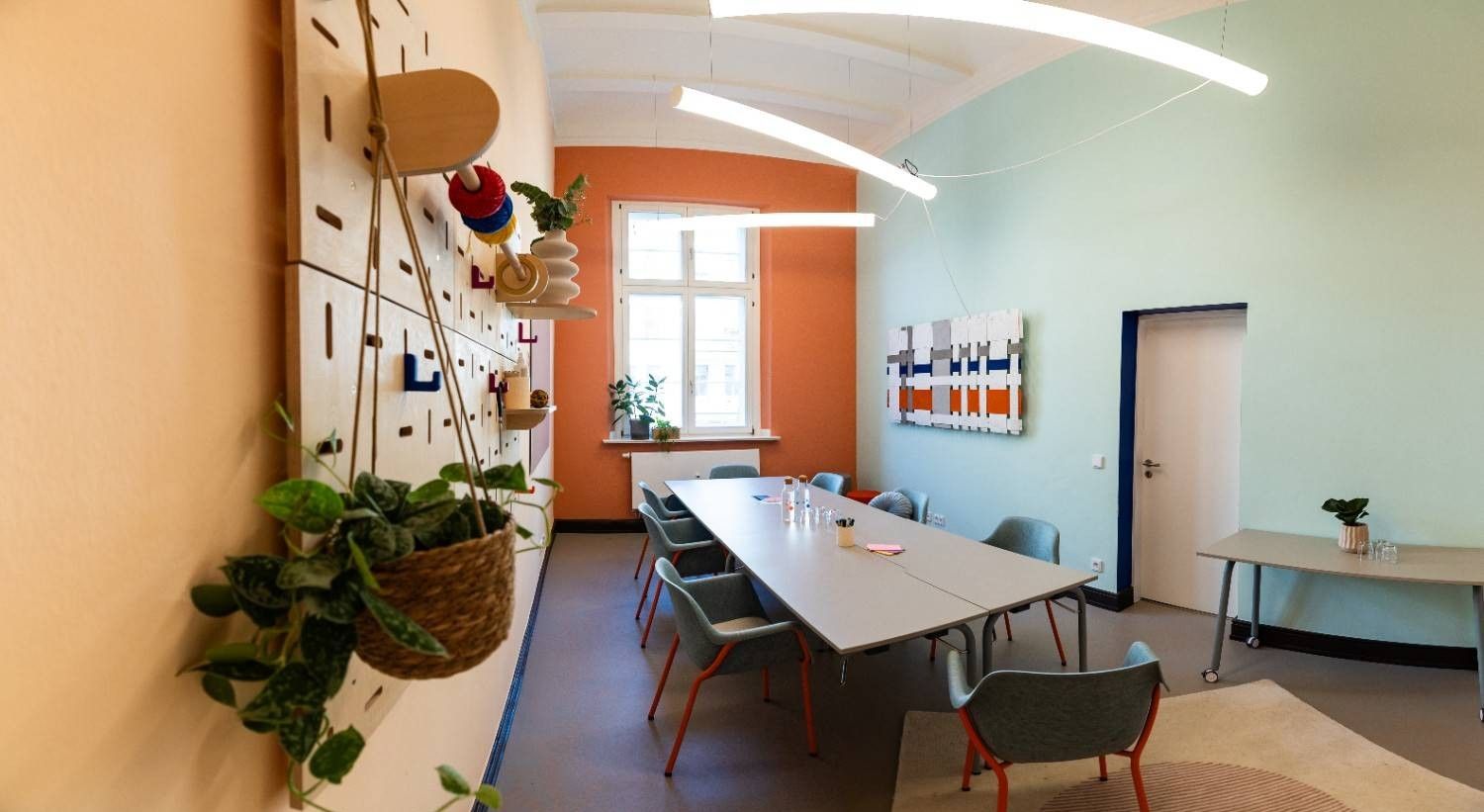 Das farbintensive Designkonzept für den Coworking Space verbindet kreative Gestaltung mit nachhaltigen, schimmelhemmenden Lösungen im Altbau und sorgt gleichzeitig für gesunde Raumluft und hohe Aufenthaltsqualität für Mieter.