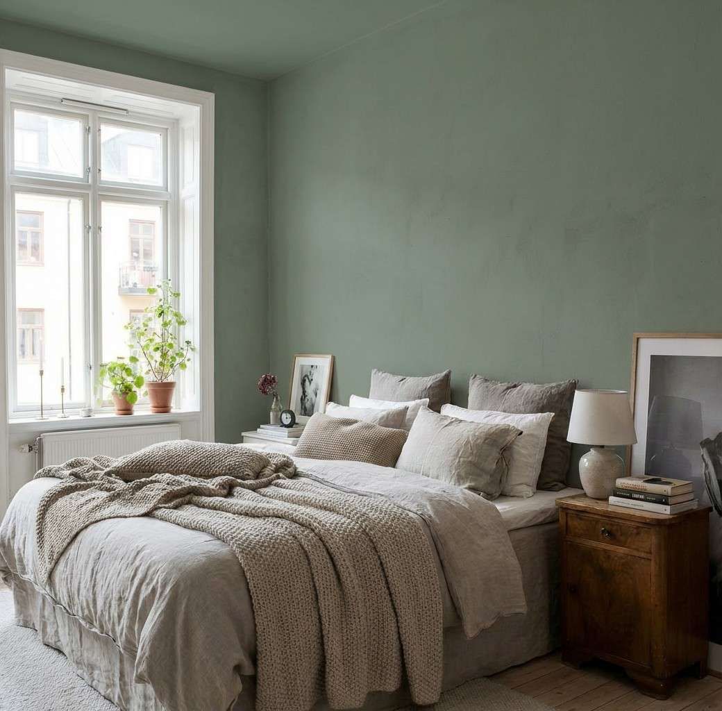 Im Schlafzimmer kann unsere grüne Farbe Wunder wirken. Sie hilft dabei, Stress abzubauen und fördert einen tiefen, erholsamen Schlaf. Ein blasses Minzgrün ist perfekt für eine beruhigende Atmosphäre, während dunklere Grüntöne wie Wald- oder Smaragdgrün ein Gefühl von Luxus und Tiefe verleihen können. Perfekt fürs Schalfzimmer eignet sich auch unser Farbton Power Nap, der die zusätzlich zur natürlichen Wirkung von Grün auch eine erdende und ruhige Wirkung mit sich bringt.