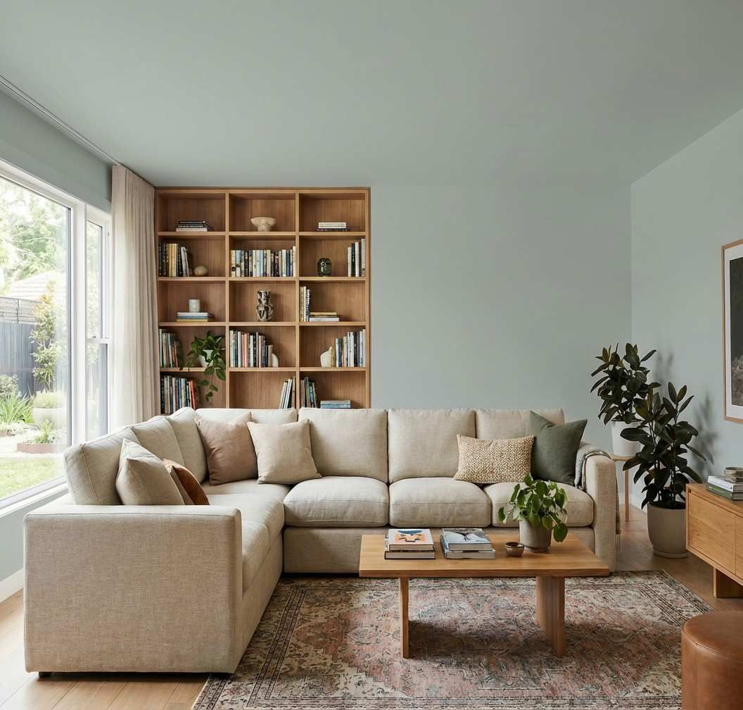 Beispiel: Eine mint farbene Küche kann durch seine leichte Reflexion des Tageslichts belebend wirken, während ein Wohnzimmer mit Salbeigrün durch subtile Schattenspiele an Tiefe gewinnt.